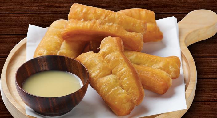 Deep-fried dough stick served with sweetened condensed milk.