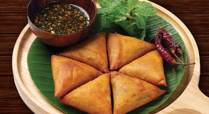 Sautéed spiced potatoes, chilies, and garlic in a golden pastry crust served with spicy tamarind and mint sauce.