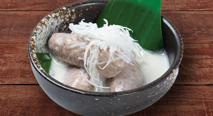 Steamed banana with coconut milk.